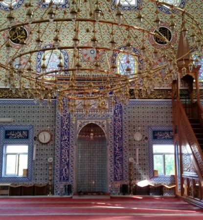 Caminin iç dekorasyonu Kütahya çinisi ile kaplanmış, minber ve mihrap ise ahşap el oyma işçiliğiyle yapılmıştır. Alemleri altın varak ile kaplanmıştır. İç kısım, Osmanlı tezyinat motifleri ile uyumlu şekilde tasarlanmıştır. Dışarıda ise tek kubbeli şadırvanı ve özenle düzenlenmiş peyzajlı avlusu mevcuttur.